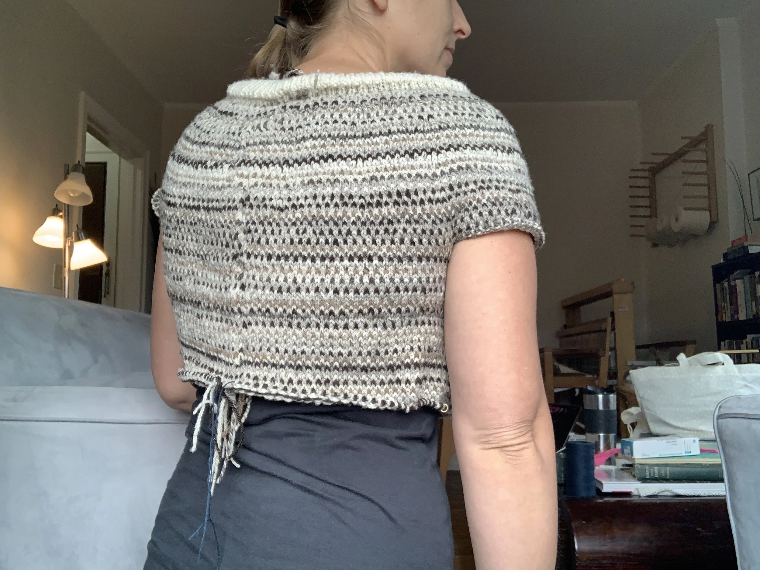 This pattern fit the project well, providing a great display of the myriad of sheep wool colors. Because it is 1 x 1 colorwork, it is double thick and very warm.