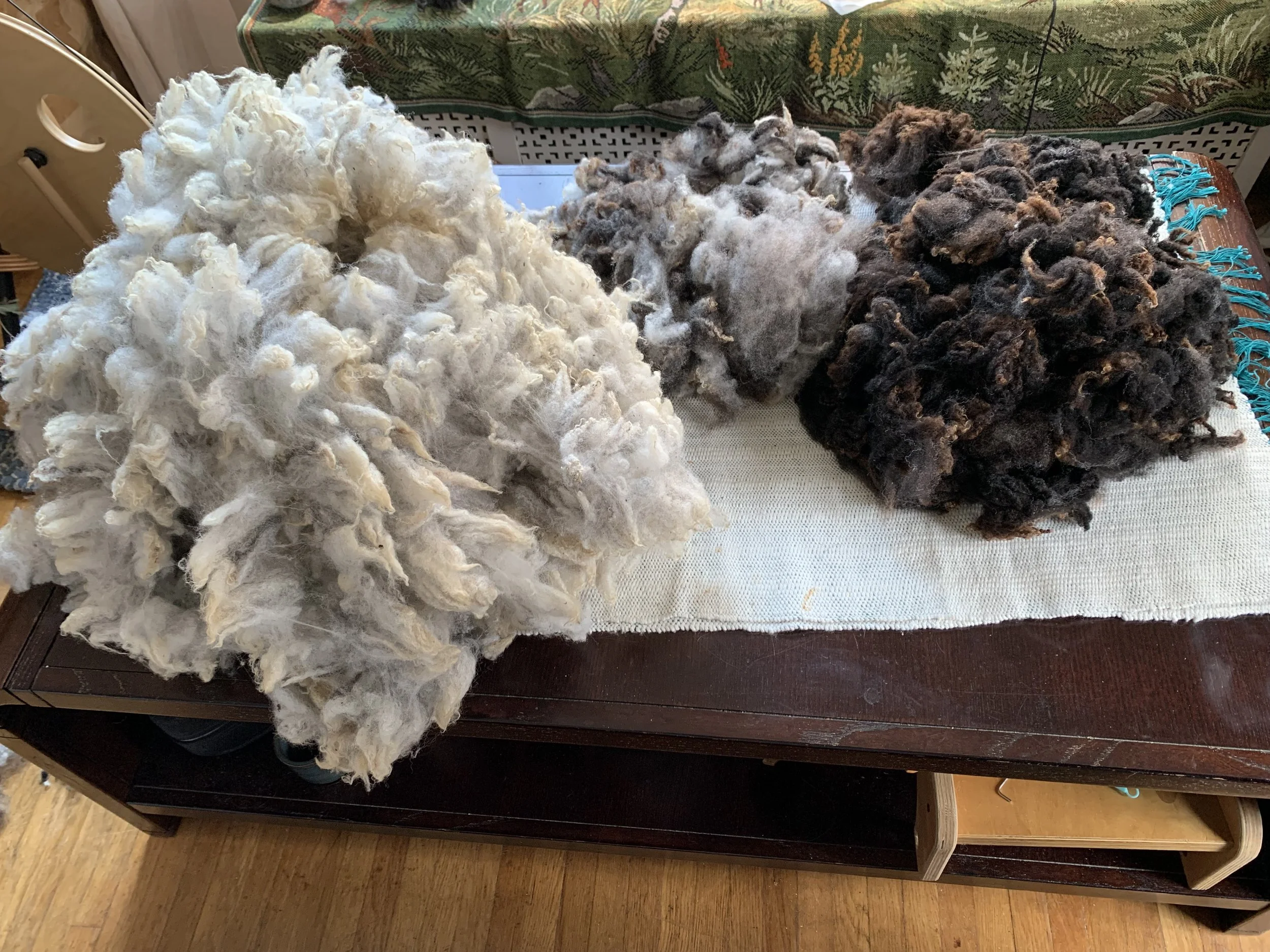 All fibers came as raw wool except Cormo. Josie will be washing, carding, and spinning.