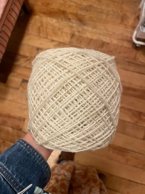 3 war chains of un-dyed handspun yarn ready to dress the loom