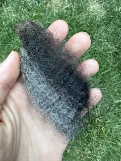 Fiber was processed through a mix of combing and carding. Combing was taking a very long time so switched to carding. I first flicked open the locks and hand-carded out any short pieces that survived skirting and then ran the fiber through a hand-driven drum carder to make beautiful, airy batts. I was surprised by all the waste fiber that is generated from the carding process - I’m glad I purchased extra fleece.