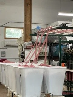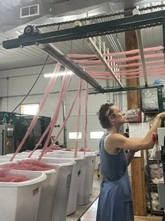 This yarn is purchased (payment to farmer per pound), skirted, scoured, dyed and processed start-to-finish in our local mill, Ewetopia Fiber Mill.